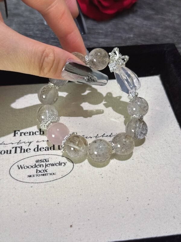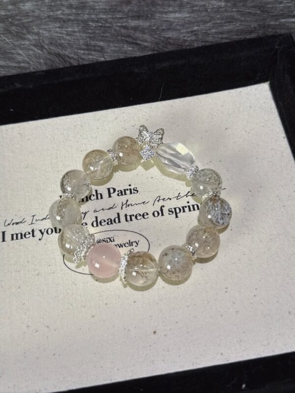 Bamboo flowers resemble a forest in the morning mist, with soft gray tones and subtle botanical textures, creating a natural atmosphere. Paired with delicate rose quartz beads, they create a clear and gentle charm. 🌷Bamboo flowers offer stable energy, helping to purify your energy and enhance clarity of thought. Rose quartz, with its romantic energy, boosts your relationships and interpersonal attraction, breaking deadlocks and opening doors. If you’re looking to improve your relationships or find true love, this bracelet is perfect!