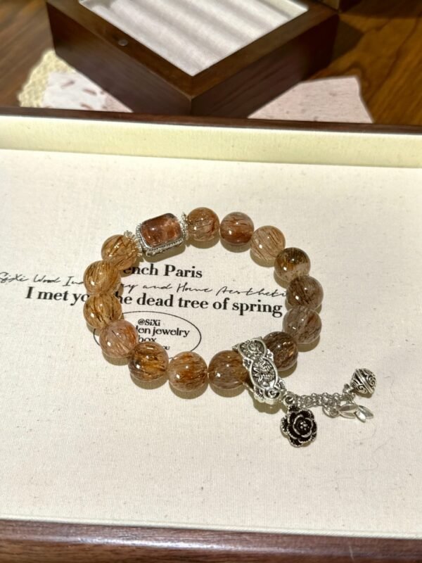 The deep black gold Super, paired with the Ghost Box, truly evokes a mysterious cosmic beauty. Black gold Super is a business stone, helping the wearer see clearly and improve efficiency. It supports business negotiations and important decision-making, allowing you to act with composure and fortitude. The Ghost Box acts as a small energy reservoir, accumulating and amplifying positive energy, attracting wealth and good fortune while also regulating physical and mental health.