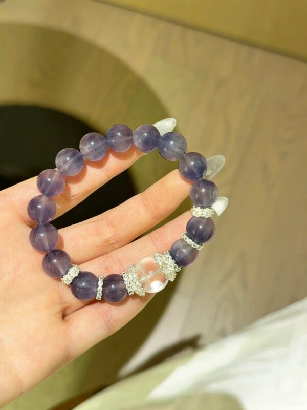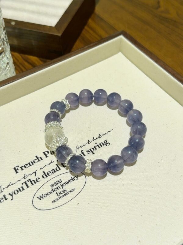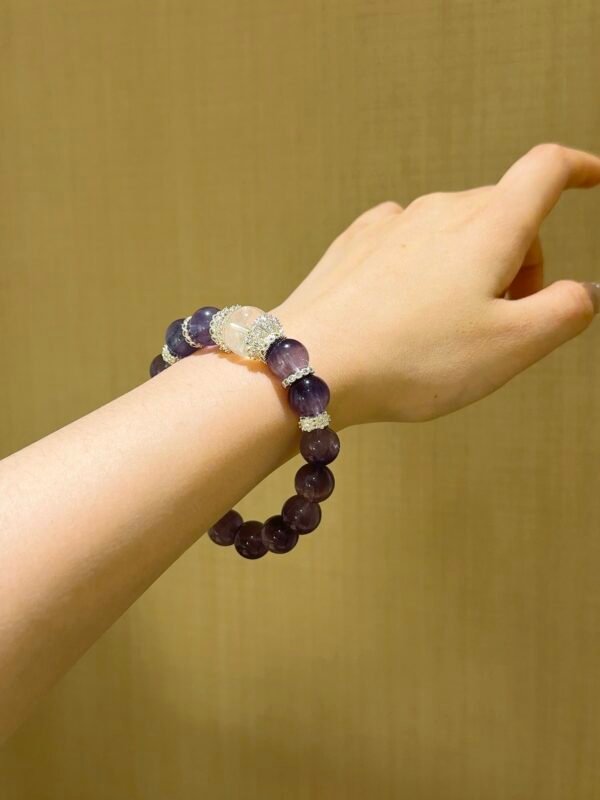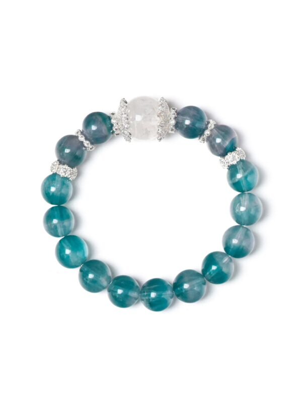 The ethereal, misty brushed fluorite, paired with a white ghost top bead, is truly breathtaking in photos! Known as the “wealth stone,” white ghost not only helps attract positive wealth but also effectively purifies negative energy. Fluorite can help us maintain a clear mind and high efficiency in our fast-paced work and study!