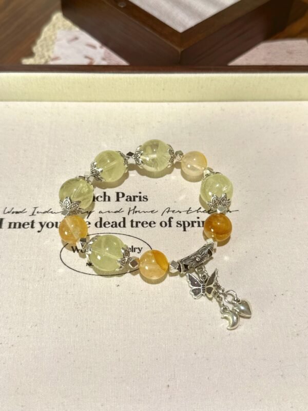 Citrine paired with yellow gum flowers creates a fresh and elegant look. Each bead radiates a warm, lustrous glow, reminiscent of the autumn afternoon sun. 🌼 The yellow gum flowers, attracting wealth and treasure, bring a natural aura of good fortune, bringing small surprises to our lives and careers. Citrine not only aids in unexpected wealth, but is also a stone of wisdom, stimulating our thinking, helping us resolve problems and making decisions with greater composure and precision.
