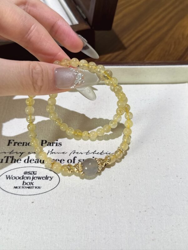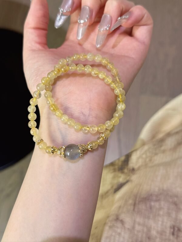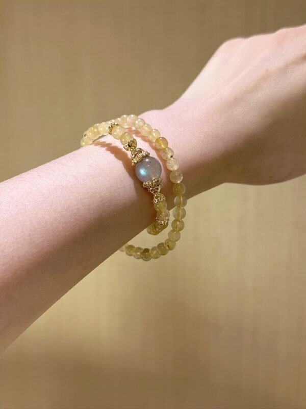 Golden Rutilated Quartz Gray Moonlight Bracelet – Balances body and mind | Enhances rationality | Strengthens relationships | Improves sleep | Attracts wealth | Career advancement