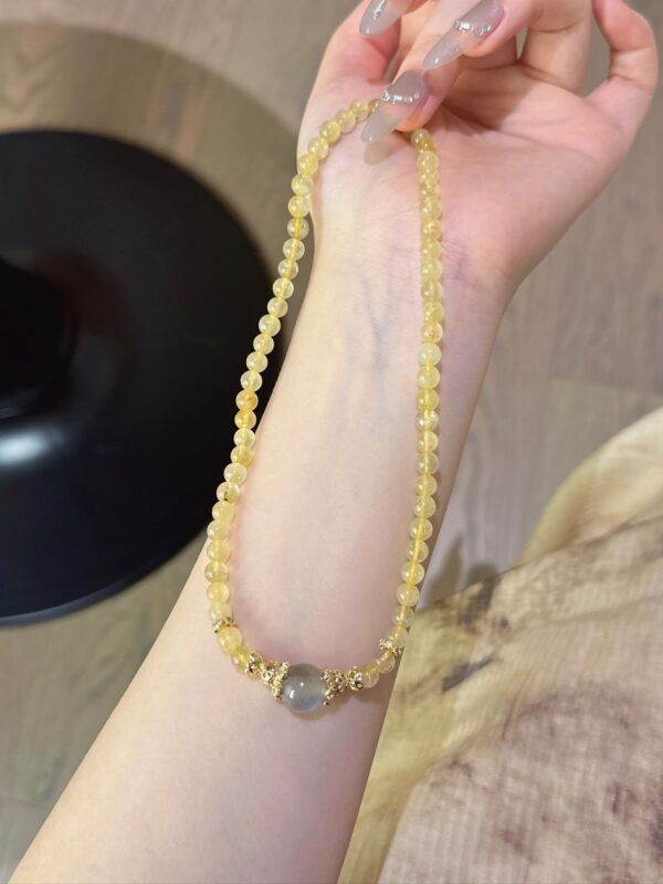 Material & Size: Golden Rutilated Quartz approximately 5mm, Gray Moonlight approximately 10mm
