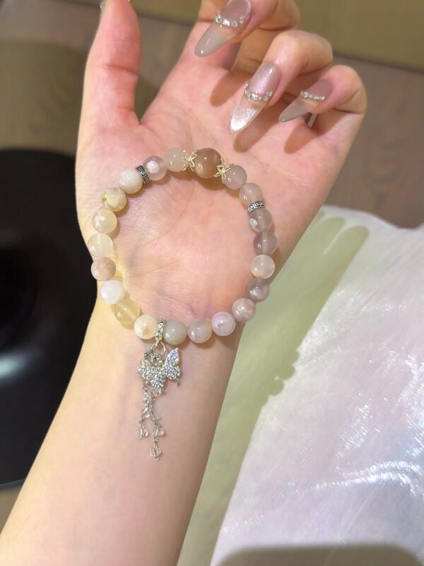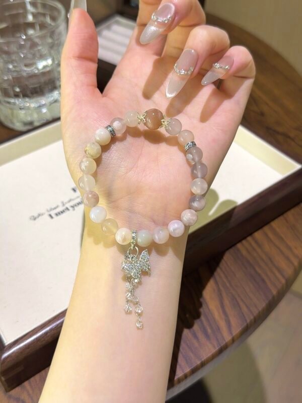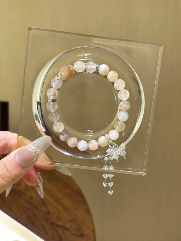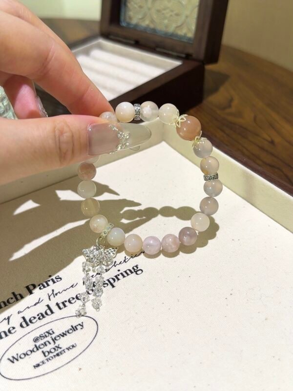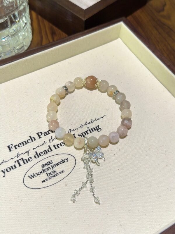 Sakura agate paired with sunstone offers a peaceful and harmonious protection amidst a blossoming landscape! The delicate pink agate and the orange-yellow hue of sunstone create a visually warm effect, their color combination reminiscent of spring petals and sunshine. Sakura agate brings emotional stability, helps relieve stress, and promotes peaceful sleep. Sunstone, on the other hand, is a stone rich in positive energy, attracting luck and wealth while warding off negativity.