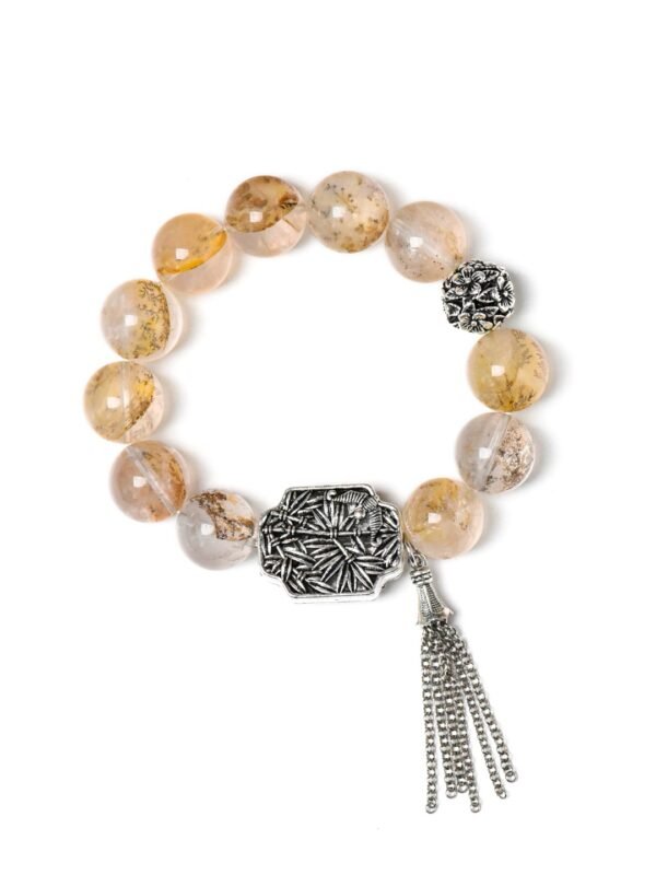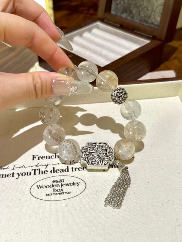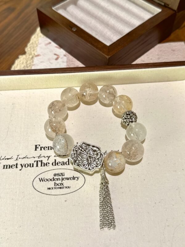 Naturally patterned small gum flower beads paired with silver vintage charms create a gentle, modern Chinese aesthetic. Small gum flowers not only improve interpersonal relationships but also help you achieve your goals in career and life, fostering a positive emotional flow.