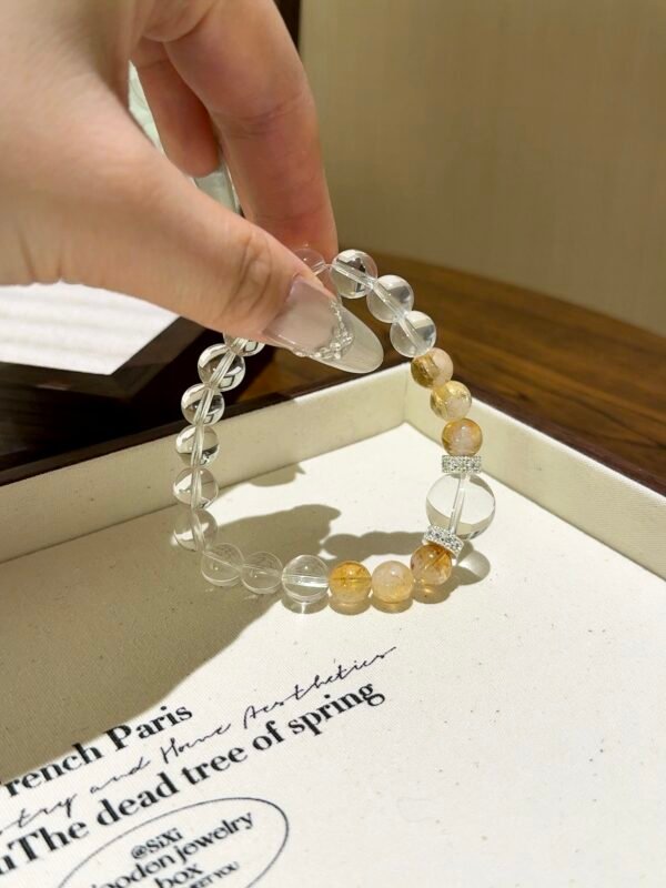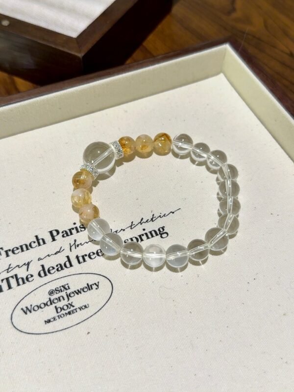 A perfect combination of white crystal and citrine. The purifying power of white crystal helps us get rid of negative energy, bringing a beautiful mood every day! The golden citrine symbolizes wealth and prosperity, helping you achieve career success and increase your wealth!