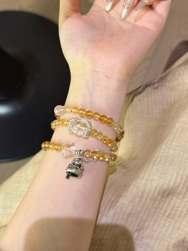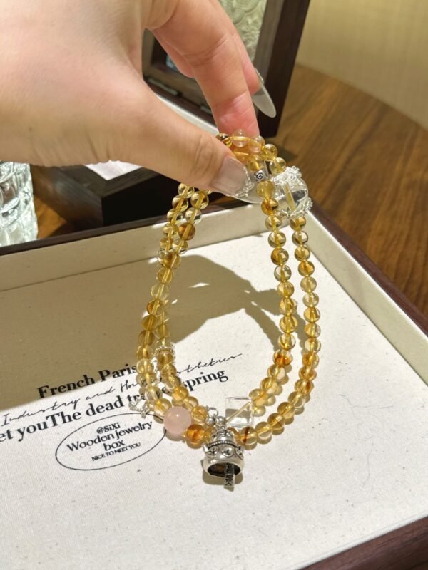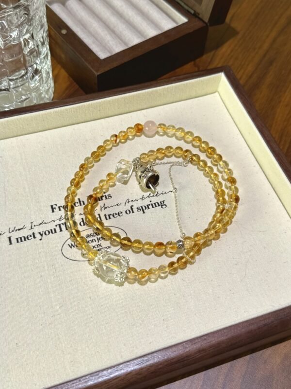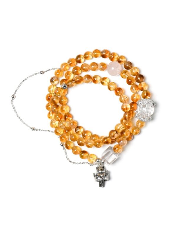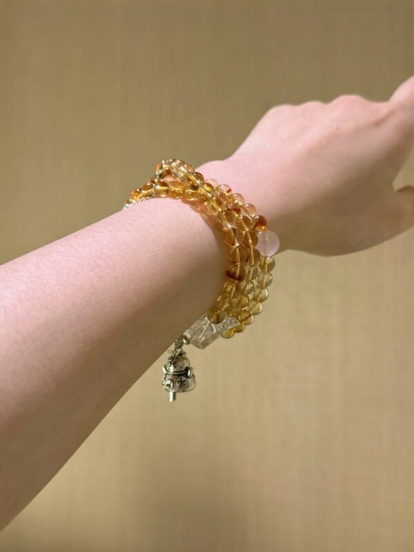 Yellow Pagoda Quartz truly feels like sunlight shining on gold, brimming with wealth. Paired with a rose quartz, it’s gentle and soft, adding a touch of cuteness. Paired with a 925 silver maneki cat, it guarantees blessings, benefactors, and good fortune. A must-have for work, project discussions, or starting a business! Every time you raise your hand, it feels like you’re summoning good luck. Yellow Pagoda Quartz enhances career success, rose quartz improves relationships, and white quartz boosts your energy. Wear this bracelet for smooth sailing and prosperity!