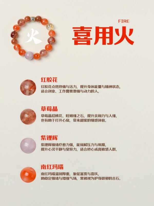 This one is perfect for those experiencing a period of good fortune, striving for goals, or rekindling their life’s motivation. The Five Elements Fire element is a must-have! 🔥