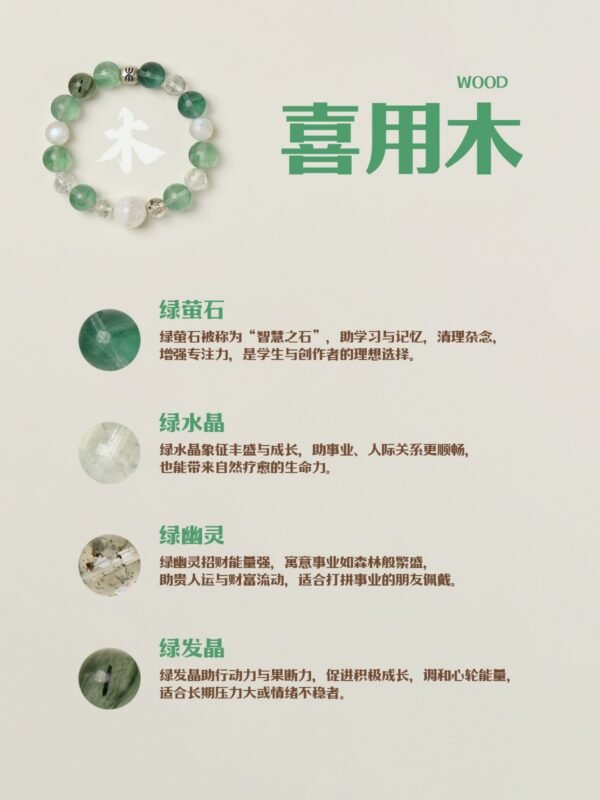 🔸Green Rutilated Quartz | Represents the Wood Element, enhancing initiative and positive thinking, suitable for starting new projects and breaking through self-imposed limitations;