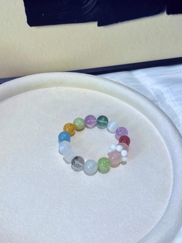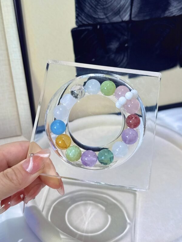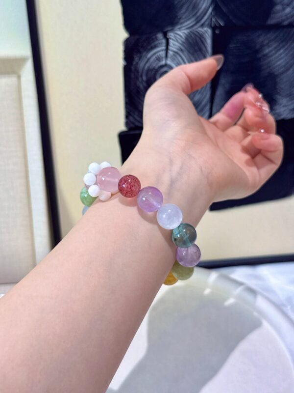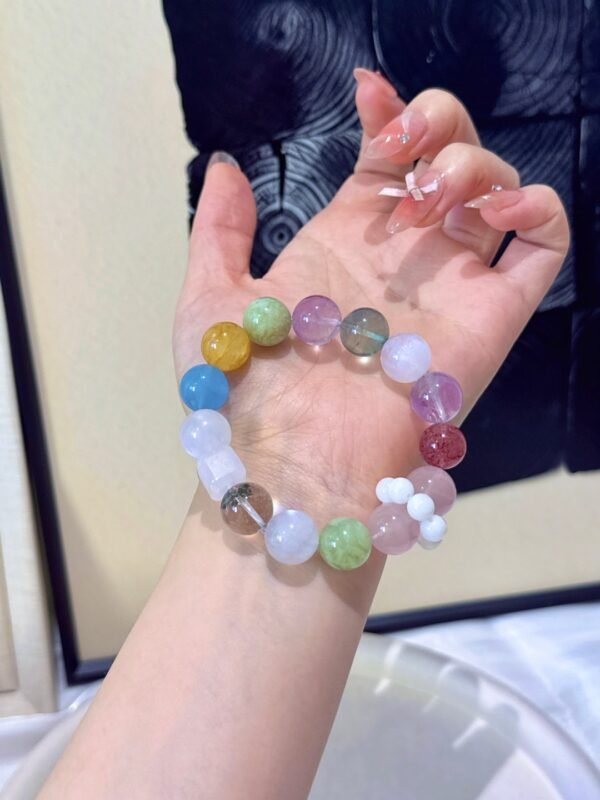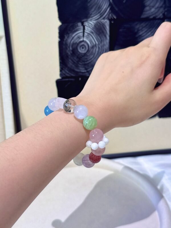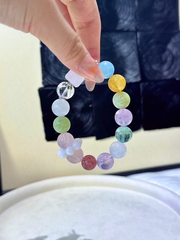 Contains rose quartz, amethyst, Xiuyan jade, yellow tantalum, green phantom, aquamarine, and strawberry quartz. A vibrant party of color! A multi-treasure bracelet is especially worth buying for beginners, as it regulates the emotional energy of the seven chakras.