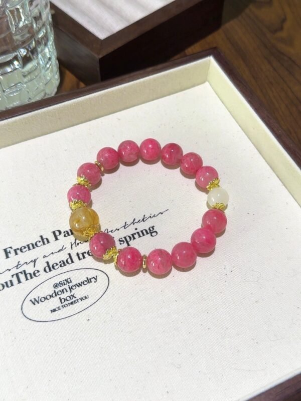 Rose Quartz, Yellow Gum Flower, and White Moonlight Bracelet – See the Situation Clearly | Attract Wealth and Gather Wealth | Attract Good Luck | Harmonize Magnetic Fields | Enhance Relationships