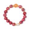The warm pink of rose quartz is accented by the warm golden color of yellow gum flower and the gentle white moonlight. A truly captivating sight! Rose quartz enhances relationships and love, yellow gum flower is a traditional wealth-attracting stone, and white moonstone helps harmonize magnetic fields and strengthen intuition. This trio of combinations makes this bracelet a powerful energy tool.